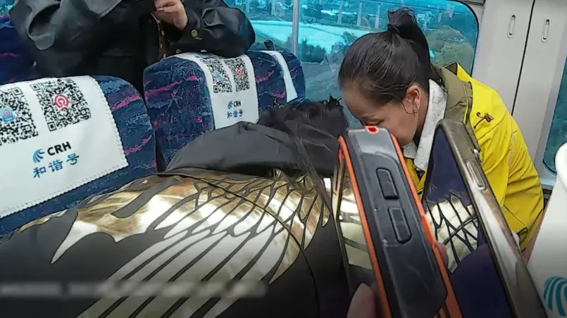 “只有1分钟,大家要迅速!”时间紧迫,唐雨晴和其他乘务员一同帮助旅客收拾行李,并交代中途下车的注意事项。